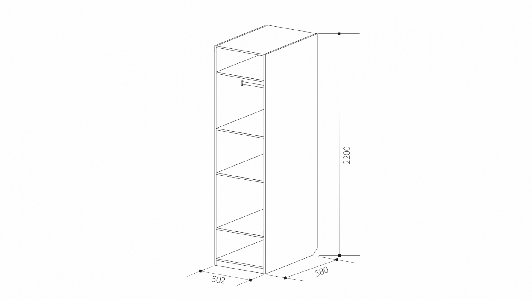 ДхВхШ: 502х2200х580 мм.